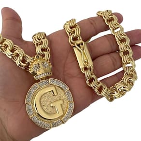 Cordão 12mm Friso + Pingente Letra - Banhado a ouro Detalhes do Produto: Material: ligas metálicas de alta qualidade, especialmente tratadas para fixação e absorção do ouro, com acabamento em verniz protetor. Aparência: visual idêntico ao ouro maciço. Produção: artesanal, com atenção meticulosa aos detalhes. Banho: 10 camadas espessas de ouro 18k, finalizadas com verniz antialérgico . Elos: soldados varia conforme o modelo . Pedras: zircônias brilhantes cravejadas quando aplicável . Tamanhos Disponíveis: Cordões Masculinos: 70cm padrão e 60cm sob consulta/Pedido Via Chat . Cordões Femininos: 50cm padrão e 45cm sob consulta/Pedido Via Chat . Pulseiras: 21cm padrão ; tamanhos de 18cm a 23cm sob consulta/Pedido Via Chat. Pingentes: conforme imagens; consulte para mais detalhes via chat. Espessuras Recomendadas para Cordões / Pingentes: P: 1mm a 4mm M: 4mm a 8mm G: 6mm a 13mm Gg: 12mm a 18mm Incluso na Compra: Saquinho de organza para armazenamento seguro. Caixa elegante, perfeita para presente. Cupom de desconto para a próxima compra. Flyer com outros produtos da coleção. Carta de agradecimento personalizada. Adesivo da marca ToJoia18k. Informações Adicionais: : 6 meses termos acompanham o produto . Devolução: 7 dias para devolução sem questionamentos. Envio: despacho em até 24 horas úteis após confirmação do pagamento. Cuidados com a Peça: Evite contato com produtos químicos; aguarde o perfume secar antes de usar. Evite contato com shampoo, condicionadores e suor excessivo. Armazene em local seco, preferencialmente no saquinho de organza fornecido. Uso no mar e piscina é permitido; lave com água corrente e sabão neutro após. Por que Escolher a ToJoia18k Semi-joias luxuosas que combinam estilo, qualidade e sofisticação. Banho espesso de ouro 18k, garantindo brilho duradouro e acabamento impecável. Design exclusivo e produção artesanal, perfeitos para qualquer ocasião. Materiais premium que asseguram durabilidade. Ao escolher uma semi-joia ToJoia18k, você investe em qualidade, elegância e uma experiência única. Aguardamos sua compra Observação: pode ocorrer variação no fecho raramente . Imagens reais, sem edição. Qualquer dúvida, estamos à disposição para esclarecimentos. Marca: Não Informado Ean: 7895390201976