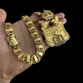 Cordão 15mm Dubai Pingente Visionário 00 Banhado A Ouro 18k