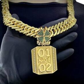 Cordão 18mm Grumet + Pingente 01N02 - Banhado a ouro 18k Detalhes do Produto: Material: ligas metálicas de alta qualidade, especialmente tratadas para fixação e absorção do ouro, com acabamento em verniz protetor. Aparência: visual idêntico ao ouro maciço. Produção: artesanal, com atenção meticulosa aos detalhes. Banho: 10 camadas espessas de ouro 18k, finalizadas com verniz antialérgico . Elos: soldados varia conforme o modelo . Pedras: zircônias brilhantes cravejadas quando aplicável . Tamanhos Disponíveis: Cordões Masculinos: 70cm padrão e 60cm sob consulta/Pedido Via Chat . Cordões Femininos: 50cm padrão e 45cm sob consulta/Pedido Via Chat . Pulseiras: 21cm padrão ; tamanhos de 18cm a 23cm sob consulta/Pedido Via Chat. Pingentes: conforme imagens; consulte para mais detalhes via chat. Espessuras Recomendadas para Cordões / Pingentes: P: 1mm a 4mm M: 4mm a 8mm G: 6mm a 13mm Gg: 12mm a 18mm Incluso na Compra: Saquinho de organza para armazenamento seguro. Caixa elegante, perfeita para presente. Cupom de desconto para a próxima compra. Flyer com outros produtos da coleção. Carta de agradecimento personalizada. Adesivo da marca ToJoia18k. Informações Adicionais: : 6 meses termos acompanham o produto . Devolução: 7 dias para devolução sem questionamentos. Envio: despacho em até 24 horas úteis após confirmação do pagamento. Cuidados com a Peça: Evite contato com produtos químicos; aguarde o perfume secar antes de usar. Evite contato com shampoo, condicionadores e suor excessivo. Armazene em local seco, preferencialmente no saquinho de organza fornecido. Uso no mar e piscina é permitido; lave com água corrente e sabão neutro após. Por que Escolher a ToJoia18k Semi-joias luxuosas que combinam estilo, qualidade e sofisticação. Banho espesso de ouro 18k, garantindo brilho duradouro e acabamento impecável. Design exclusivo e produção artesanal, perfeitos para qualquer ocasião. Materiais premium que asseguram durabilidade. Ao escolher uma semi-joia ToJoia18k, você investe em qualidade, elegância e uma experiência única. Aguardamos sua compra Observação: pode ocorrer variação no fecho raramente . Imagens reais, sem edição. Qualquer dúvida, estamos à disposição para esclarecimentos. Marca: Não Informado Ean: 7899898261494