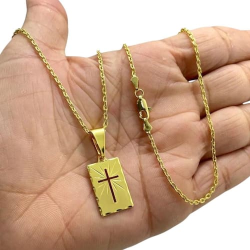 Cordão 2mm Cadeado + Pingente Cruz Vazada - Banhado a ouro Detalhes do Produto: Material: ligas metálicas de alta qualidade, especialmente tratadas para fixação e absorção do ouro, com acabamento em verniz protetor. Aparência: visual idêntico ao ouro maciço. Produção: artesanal, com atenção meticulosa aos detalhes. Banho: 10 camadas espessas de ouro 18k, finalizadas com verniz antialérgico . Elos: soldados varia conforme o modelo . Pedras: zircônias brilhantes cravejadas quando aplicável . Tamanhos Disponíveis: Cordões Masculinos: 70cm padrão e 60cm sob consulta/Pedido Via Chat . Cordões Femininos: 50cm padrão e 45cm sob consulta/Pedido Via Chat . Pulseiras: 21cm padrão ; tamanhos de 18cm a 23cm sob consulta/Pedido Via Chat. Pingentes: conforme imagens; consulte para mais detalhes via chat. Espessuras Recomendadas para Cordões / Pingentes: P: 1mm a 4mm M: 4mm a 8mm G: 6mm a 13mm Gg: 12mm a 18mm Incluso na Compra: Saquinho de organza para armazenamento seguro. Caixa elegante, perfeita para presente. Cupom de desconto para a próxima compra. Flyer com outros produtos da coleção. Carta de agradecimento personalizada. Adesivo da marca ToJoia18k. Informações Adicionais: : 6 meses termos acompanham o produto . Devolução: 7 dias para devolução sem questionamentos. Envio: despacho em até 24 horas úteis após confirmação do pagamento. Cuidados com a Peça: Evite contato com produtos químicos; aguarde o perfume secar antes de usar. Evite contato com shampoo, condicionadores e suor excessivo. Armazene em local seco, preferencialmente no saquinho de organza fornecido. Uso no mar e piscina é permitido; lave com água corrente e sabão neutro após. Por que Escolher a ToJoia18k Semi-joias luxuosas que combinam estilo, qualidade e sofisticação. Banho espesso de ouro 18k, garantindo brilho duradouro e acabamento impecável. Design exclusivo e produção artesanal, perfeitos para qualquer ocasião. Materiais premium que asseguram durabilidade. Ao escolher uma semi-joia ToJoia18k, você investe em qualidade, elegância e uma experiência única. Aguardamos sua compra Observação: pode ocorrer variação no fecho raramente . Imagens reais, sem edição. Qualquer dúvida, estamos à disposição para esclarecimentos. Marca: Não Informado Ean: 7898747439442