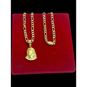 Cordão 3X1 8Mm + Pingente Rosto Cristo Banhado A Ouro 18K