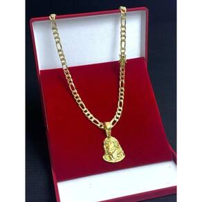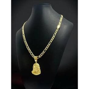 Cordão 3X1 8Mm + Pingente Rosto Cristo Banhado A Ouro 18K