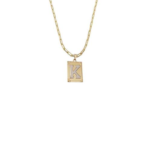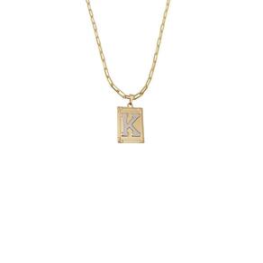 Corrente Colar Cordão modelo unissex pingente letra inicial K banhado em Ouro 18k. Colar com Pingente Retangular banhado em Ouro 18k, com acabamento impecável em Ródio branco que destaca ainda mais a beleza da peça. O centro do pingente traz uma letra inicial personalizada, tornando-o uma joia exclusiva e carregada de significado. Delicado e sofisticado, este colar é perfeito para quem busca elegância e personalização em um só acessório, ideal para presentear ou usar em ocasiões especiais. Especificações do produto: Colar banhado a Ouro 18k. Antialérgico. Modelo do fecho do colar: lagosta. Espessura do colar: 2 mm. Peso do colar com o pingente: 6 g. Pingente letra inicial retangular com detalhes em Ródio branco banhado a Ouro 18k. Tamanho do pingente: 3 cm altura x 2 cm largura. Acompanha linda caixinha de presentes. Seguindo nossas orientações de uso no certificado de a joia permanecerá conservada por longos anos ou até décadas
