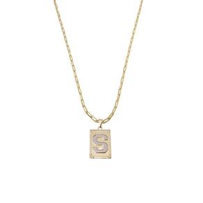 Corrente Colar Cordão modelo unissex pingente letra inicial S banhado em Ouro 18k. Colar com Pingente Retangular banhado em Ouro 18k, com acabamento impecável em Ródio branco que destaca ainda mais a beleza da peça. O centro do pingente traz uma letra inicial personalizada, tornando-o uma joia exclusiva e carregada de significado. Delicado e sofisticado, este colar é perfeito para quem busca elegância e personalização em um só acessório, ideal para presentear ou usar em ocasiões especiais. Especificações do produto: Colar banhado a Ouro 18k. Antialérgico. Modelo do fecho do colar: lagosta. Espessura do colar: 2 mm. Peso do colar com o pingente: 6 g. Pingente letra inicial retangular com detalhes em Ródio branco banhado a Ouro 18k. Tamanho do pingente: 3 cm altura x 2 cm largura. Acompanha linda caixinha de presentes. Seguindo nossas orientações de uso no certificado de a joia permanecerá conservada por longos anos ou até décadas Marca: Não Informado