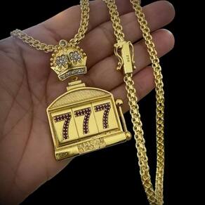 Cordão 5mm Cadeado Duplo + Pingente 777 - Banhado a ouro Detalhes do Produto: Material: ligas metálicas de alta qualidade, especialmente tratadas para fixação e absorção do ouro, com acabamento em verniz protetor. Aparência: visual idêntico ao ouro maciço. Produção: artesanal, com atenção meticulosa aos detalhes. Banho: 10 camadas espessas de ouro 18k, finalizadas com verniz antialérgico . Elos: soldados varia conforme o modelo . Pedras: zircônias brilhantes cravejadas quando aplicável . Tamanhos Disponíveis: Cordões Masculinos: 70cm padrão e 60cm sob consulta/Pedido Via Chat . Cordões Femininos: 50cm padrão e 45cm sob consulta/Pedido Via Chat . Pulseiras: 21cm padrão ; tamanhos de 18cm a 23cm sob consulta/Pedido Via Chat. Pingentes: conforme imagens; consulte para mais detalhes via chat. Espessuras Recomendadas para Cordões / Pingentes: P: 1mm a 4mm M: 4mm a 8mm G: 6mm a 13mm Gg: 12mm a 18mm Incluso na Compra: Saquinho de organza para armazenamento seguro. Caixa elegante, perfeita para presente. Cupom de desconto para a próxima compra. Flyer com outros produtos da coleção. Carta de agradecimento personalizada. Adesivo da marca ToJoia18k. Informações Adicionais: : 6 meses termos acompanham o produto . Devolução: 7 dias para devolução sem questionamentos. Envio: despacho em até 24 horas úteis após confirmação do pagamento. Cuidados com a Peça: Evite contato com produtos químicos; aguarde o perfume secar antes de usar. Evite contato com shampoo, condicionadores e suor excessivo. Armazene em local seco, preferencialmente no saquinho de organza fornecido. Uso no mar e piscina é permitido; lave com água corrente e sabão neutro após. Por que Escolher a ToJoia18k Semi-joias luxuosas que combinam estilo, qualidade e sofisticação. Banho espesso de ouro 18k, garantindo brilho duradouro e acabamento impecável. Design exclusivo e produção artesanal, perfeitos para qualquer ocasião. Materiais premium que asseguram durabilidade. Ao escolher uma semi-joia ToJoia18k, você investe em qualidade, elegância e uma experiência única. Aguardamos sua compra Observação: pode ocorrer variação no fecho raramente . Imagens reais, sem edição. Qualquer dúvida, estamos à disposição para esclarecimentos. Marca: Não Informado