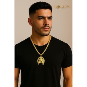 Cordão 5mm Peruano + Pingente Ferradura - Banhado a ouro Detalhes do Produto: Material: ligas metálicas de alta qualidade, especialmente tratadas para fixação e absorção do ouro, com acabamento em verniz protetor. Aparência: visual idêntico ao ouro maciço. Produção: artesanal, com atenção meticulosa aos detalhes. Banho: 10 camadas espessas de ouro 18k, finalizadas com verniz antialérgico . Elos: soldados varia conforme o modelo . Pedras: zircônias brilhantes cravejadas quando aplicável . Tamanhos Disponíveis: Cordões Masculinos: 70cm padrão e 60cm sob consulta/Pedido Via Chat . Cordões Femininos: 50cm padrão e 45cm sob consulta/Pedido Via Chat . Pulseiras: 21cm padrão ; tamanhos de 18cm a 23cm sob consulta/Pedido Via Chat. Pingentes: conforme imagens; consulte para mais detalhes via chat. Espessuras Recomendadas para Cordões / Pingentes: P: 1mm a 4mm M: 4mm a 8mm G: 6mm a 13mm Gg: 12mm a 18mm Incluso na Compra: Saquinho de organza para armazenamento seguro. Caixa elegante, perfeita para presente. Cupom de desconto para a próxima compra. Flyer com outros produtos da coleção. Carta de agradecimento personalizada. Adesivo da marca ToJoia18k. Informações Adicionais: : 6 meses termos acompanham o produto . Devolução: 7 dias para devolução sem questionamentos. Envio: despacho em até 24 horas úteis após confirmação do pagamento. Cuidados com a Peça: Evite contato com produtos químicos; aguarde o perfume secar antes de usar. Evite contato com shampoo, condicionadores e suor excessivo. Armazene em local seco, preferencialmente no saquinho de organza fornecido. Uso no mar e piscina é permitido; lave com água corrente e sabão neutro após. Por que Escolher a ToJoia18k Semi-joias luxuosas que combinam estilo, qualidade e sofisticação. Banho espesso de ouro 18k, garantindo brilho duradouro e acabamento impecável. Design exclusivo e produção artesanal, perfeitos para qualquer ocasião. Materiais premium que asseguram durabilidade. Ao escolher uma semi-joia ToJoia18k, você investe em qualidade, elegância e uma experiência única. Aguardamos sua compra Observação: pode ocorrer variação no fecho raramente . Imagens reais, sem edição. Qualquer dúvida, estamos à disposição para esclarecimentos. Marca: Não Informado