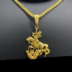 Cordão 5mm Peruano + Pingente São Jorge - Banhado a ouro Detalhes do Produto: Material: ligas metálicas de alta qualidade, especialmente tratadas para fixação e absorção do ouro, com acabamento em verniz protetor. Aparência: visual idêntico ao ouro maciço. Produção: artesanal, com atenção meticulosa aos detalhes. Banho: 10 camadas espessas de ouro 18k, finalizadas com verniz antialérgico . Elos: soldados varia conforme o modelo . Pedras: zircônias brilhantes cravejadas quando aplicável . Tamanhos Disponíveis: Cordões Masculinos: 70cm padrão e 60cm sob consulta/Pedido Via Chat . Cordões Femininos: 50cm padrão e 45cm sob consulta/Pedido Via Chat . Pulseiras: 21cm padrão ; tamanhos de 18cm a 23cm sob consulta/Pedido Via Chat. Pingentes: conforme imagens; consulte para mais detalhes via chat. Espessuras Recomendadas para Cordões / Pingentes: P: 1mm a 4mm M: 4mm a 8mm G: 6mm a 13mm Gg: 12mm a 18mm Incluso na Compra: Saquinho de organza para armazenamento seguro. Caixa elegante, perfeita para presente. Cupom de desconto para a próxima compra. Flyer com outros produtos da coleção. Carta de agradecimento personalizada. Adesivo da marca ToJoia18k. Informações Adicionais: : 6 meses termos acompanham o produto . Devolução: 7 dias para devolução sem questionamentos. Envio: despacho em até 24 horas úteis após confirmação do pagamento. Cuidados com a Peça: Evite contato com produtos químicos; aguarde o perfume secar antes de usar. Evite contato com shampoo, condicionadores e suor excessivo. Armazene em local seco, preferencialmente no saquinho de organza fornecido. Uso no mar e piscina é permitido; lave com água corrente e sabão neutro após. Por que Escolher a ToJoia18k Semi-joias luxuosas que combinam estilo, qualidade e sofisticação. Banho espesso de ouro 18k, garantindo brilho duradouro e acabamento impecável. Design exclusivo e produção artesanal, perfeitos para qualquer ocasião. Materiais premium que asseguram durabilidade. Ao escolher uma semi-joia ToJoia18k, você investe em qualidade, elegância e uma experiência única. Aguardamos sua compra Observação: pode ocorrer variação no fecho raramente . Imagens reais, sem edição. Qualquer dúvida, estamos à disposição para esclarecimentos. Marca: Não Informado