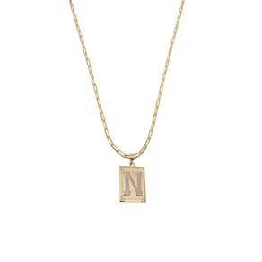 Corrente Colar Cordão modelo unissex pingente letra inicial N banhado em Ouro 18k. Colar com Pingente Retangular banhado em Ouro 18k, com acabamento impecável em Ródio branco que destaca ainda mais a beleza da peça. O centro do pingente traz uma letra inicial personalizada, tornando-o uma joia exclusiva e carregada de significado. Delicado e sofisticado, este colar é perfeito para quem busca elegância e personalização em um só acessório, ideal para presentear ou usar em ocasiões especiais. Especificações do produto: Colar banhado a Ouro 18k. Antialérgico. Modelo do fecho do colar: lagosta. Espessura do colar: 2 mm. Peso do colar com o pingente: 6 g. Pingente letra inicial retangular com detalhes em Ródio branco banhado a Ouro 18k. Tamanho do pingente: 3 cm altura x 2 cm largura. Acompanha linda caixinha de presentes. Seguindo nossas orientações de uso no certificado de garantia a joia permanecerá conservada por longos anos ou até décadas Marca: Anaisa Semijoias