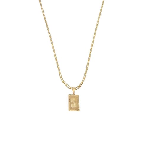 Corrente Colar Cordão modelo unissex pingente letra inicial S banhado em Ouro 18k. Colar com Pingente Retangular banhado em Ouro 18k com acabamento impecável que destaca ainda mais a beleza da peça. O pingente traz uma letra inicial personalizada, tornando-o uma joia exclusiva e carregada de significado. Delicado e sofisticado, este colar é perfeito para quem busca elegância e personalização em um só acessório, ideal para presentear ou usar em ocasiões especiais. Especificações do produto: Colar banhado a Ouro 18k. Antialérgico. Modelo do fecho do colar: lagosta. Espessura do colar: 2 mm. Peso do colar com o pingente: 4 g. Pingente letra inicial retangular banhado a Ouro 18k. Tamanho do pingente: 2,1 cm altura x 1,2 cm largura. Acompanha linda caixinha de presentes. Seguindo nossas orientações de uso no certificado de a joia permanecerá conservada por longos anos ou até décadas