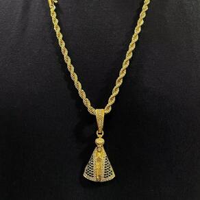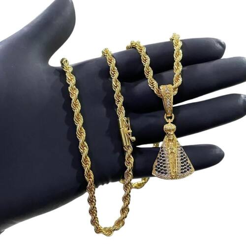 Cordão 6mm baiano + Pingente Nossa Senhora - Banhado a ouro Detalhes do Produto: Material: ligas metálicas de alta qualidade, especialmente tratadas para fixação e absorção do ouro, com acabamento em verniz protetor. Aparência: visual idêntico ao ouro maciço. Produção: artesanal, com atenção meticulosa aos detalhes. Banho: 10 camadas espessas de ouro 18k, finalizadas com verniz antialérgico . Elos: soldados varia conforme o modelo . Pedras: zircônias brilhantes cravejadas quando aplicável . Tamanhos Disponíveis: Cordões Masculinos: 70cm padrão e 60cm sob consulta/Pedido Via Chat . Cordões Femininos: 50cm padrão e 45cm sob consulta/Pedido Via Chat . Pulseiras: 21cm padrão ; tamanhos de 18cm a 23cm sob consulta/Pedido Via Chat. Pingentes: conforme imagens; consulte para mais detalhes via chat. Espessuras Recomendadas para Cordões / Pingentes: P: 1mm a 4mm M: 4mm a 8mm G: 6mm a 13mm Gg: 12mm a 18mm Incluso na Compra: Saquinho de organza para armazenamento seguro. Caixa elegante, perfeita para presente. Cupom de desconto para a próxima compra. Flyer com outros produtos da coleção. Carta de agradecimento personalizada. Adesivo da marca ToJoia18k. Informações Adicionais: : 6 meses termos acompanham o produto . Devolução: 7 dias para devolução sem questionamentos. Envio: despacho em até 24 horas úteis após confirmação do pagamento. Cuidados com a Peça: Evite contato com produtos químicos; aguarde o perfume secar antes de usar. Evite contato com shampoo, condicionadores e suor excessivo. Armazene em local seco, preferencialmente no saquinho de organza fornecido. Uso no mar e piscina é permitido; lave com água corrente e sabão neutro após. Por que Escolher a ToJoia18k Semi-joias luxuosas que combinam estilo, qualidade e sofisticação. Banho espesso de ouro 18k, garantindo brilho duradouro e acabamento impecável. Design exclusivo e produção artesanal, perfeitos para qualquer ocasião. Materiais premium que asseguram durabilidade. Ao escolher uma semi-joia ToJoia18k, você investe em qualidade, elegância e uma experiência única. Aguardamos sua compra Observação: pode ocorrer variação no fecho raramente . Imagens reais, sem edição. Qualquer dúvida, estamos à disposição para esclarecimentos. Marca: Não Informado
