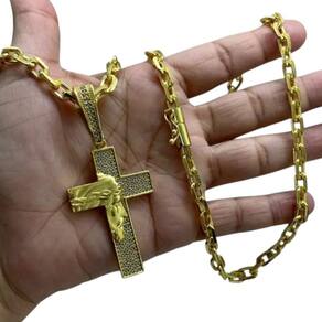 Cordão 6mm Cadeado + Pingente Cruz Face - Banhado a ouro Detalhes do Produto: Material: ligas metálicas de alta qualidade, especialmente tratadas para fixação e absorção do ouro, com acabamento em verniz protetor. Aparência: visual idêntico ao ouro maciço. Produção: artesanal, com atenção meticulosa aos detalhes. Banho: 10 camadas espessas de ouro 18k, finalizadas com verniz antialérgico . Elos: soldados varia conforme o modelo . Pedras: zircônias brilhantes cravejadas quando aplicável . Tamanhos Disponíveis: Cordões Masculinos: 70cm padrão e 60cm sob consulta/Pedido Via Chat . Cordões Femininos: 50cm padrão e 45cm sob consulta/Pedido Via Chat . Pulseiras: 21cm padrão ; tamanhos de 18cm a 23cm sob consulta/Pedido Via Chat. Pingentes: conforme imagens; consulte para mais detalhes via chat. Espessuras Recomendadas para Cordões / Pingentes: P: 1mm a 4mm M: 4mm a 8mm G: 6mm a 13mm Gg: 12mm a 18mm Incluso na Compra: Saquinho de organza para armazenamento seguro. Caixa elegante, perfeita para presente. Cupom de desconto para a próxima compra. Flyer com outros produtos da coleção. Carta de agradecimento personalizada. Adesivo da marca ToJoia18k. Informações Adicionais: : 6 meses termos acompanham o produto . Devolução: 7 dias para devolução sem questionamentos. Envio: despacho em até 24 horas úteis após confirmação do pagamento. Cuidados com a Peça: Evite contato com produtos químicos; aguarde o perfume secar antes de usar. Evite contato com shampoo, condicionadores e suor excessivo. Armazene em local seco, preferencialmente no saquinho de organza fornecido. Uso no mar e piscina é permitido; lave com água corrente e sabão neutro após. Por que Escolher a ToJoia18k Semi-joias luxuosas que combinam estilo, qualidade e sofisticação. Banho espesso de ouro 18k, garantindo brilho duradouro e acabamento impecável. Design exclusivo e produção artesanal, perfeitos para qualquer ocasião. Materiais premium que asseguram durabilidade. Ao escolher uma semi-joia ToJoia18k, você investe em qualidade, elegância e uma experiência única. Aguardamos sua compra Observação: pode ocorrer variação no fecho raramente . Imagens reais, sem edição. Qualquer dúvida, estamos à disposição para esclarecimentos. Marca: Tojoia18K