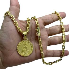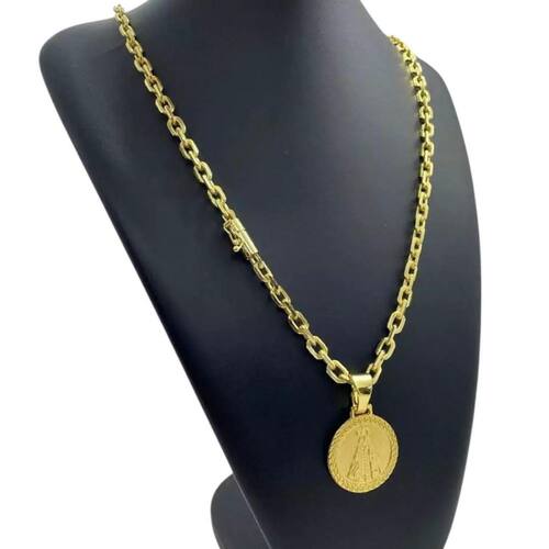 Cordão 6mm Cadeado + Pingente Nossa Senhora - Banhado a ouro Detalhes do Produto: Material: ligas metálicas de alta qualidade, especialmente tratadas para fixação e absorção do ouro, com acabamento em verniz protetor. Aparência: visual idêntico ao ouro maciço. Produção: artesanal, com atenção meticulosa aos detalhes. Banho: 10 camadas espessas de ouro 18k, finalizadas com verniz antialérgico . Elos: soldados varia conforme o modelo . Pedras: zircônias brilhantes cravejadas quando aplicável . Tamanhos Disponíveis: Cordões Masculinos: 70cm padrão e 60cm sob consulta/Pedido Via Chat . Cordões Femininos: 50cm padrão e 45cm sob consulta/Pedido Via Chat . Pulseiras: 21cm padrão ; tamanhos de 18cm a 23cm sob consulta/Pedido Via Chat. Pingentes: conforme imagens; consulte para mais detalhes via chat. Espessuras Recomendadas para Cordões / Pingentes: P: 1mm a 4mm M: 4mm a 8mm G: 6mm a 13mm Gg: 12mm a 18mm Incluso na Compra: Saquinho de organza para armazenamento seguro. Caixa elegante, perfeita para presente. Cupom de desconto para a próxima compra. Flyer com outros produtos da coleção. Carta de agradecimento personalizada. Adesivo da marca ToJoia18k. Informações Adicionais: : 6 meses termos acompanham o produto . Devolução: 7 dias para devolução sem questionamentos. Envio: despacho em até 24 horas úteis após confirmação do pagamento. Cuidados com a Peça: Evite contato com produtos químicos; aguarde o perfume secar antes de usar. Evite contato com shampoo, condicionadores e suor excessivo. Armazene em local seco, preferencialmente no saquinho de organza fornecido. Uso no mar e piscina é permitido; lave com água corrente e sabão neutro após. Por que Escolher a ToJoia18k Semi-joias luxuosas que combinam estilo, qualidade e sofisticação. Banho espesso de ouro 18k, garantindo brilho duradouro e acabamento impecável. Design exclusivo e produção artesanal, perfeitos para qualquer ocasião. Materiais premium que asseguram durabilidade. Ao escolher uma semi-joia ToJoia18k, você investe em qualidade, elegância e uma experiência única. Aguardamos sua compra Observação: pode ocorrer variação no fecho raramente . Imagens reais, sem edição. Qualquer dúvida, estamos à disposição para esclarecimentos. Marca: Não Informado