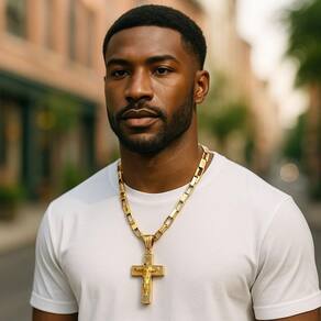 Cordão 6mm Tijolinho Curto + Pingente Cruz - Banhado a ouro Detalhes do Produto: Material: ligas metálicas de alta qualidade, especialmente tratadas para fixação e absorção do ouro, com acabamento em verniz protetor. Aparência: visual idêntico ao ouro maciço. Produção: artesanal, com atenção meticulosa aos detalhes. Banho: 10 camadas espessas de ouro 18k, finalizadas com verniz antialérgico . Elos: soldados varia conforme o modelo . Pedras: zircônias brilhantes cravejadas quando aplicável . Tamanhos Disponíveis: Cordões Masculinos: 70cm padrão e 60cm sob consulta/Pedido Via Chat . Cordões Femininos: 50cm padrão e 45cm sob consulta/Pedido Via Chat . Pulseiras: 21cm padrão ; tamanhos de 18cm a 23cm sob consulta/Pedido Via Chat. Pingentes: conforme imagens; consulte para mais detalhes via chat. Espessuras Recomendadas para Cordões / Pingentes: P: 1mm a 4mm M: 4mm a 8mm G: 6mm a 13mm Gg: 12mm a 18mm Incluso na Compra: Saquinho de organza para armazenamento seguro. Caixa elegante, perfeita para presente. Cupom de desconto para a próxima compra. Flyer com outros produtos da coleção. Carta de agradecimento personalizada. Adesivo da marca ToJoia18k. Informações Adicionais: : 6 meses termos acompanham o produto . Devolução: 7 dias para devolução sem questionamentos. Envio: despacho em até 24 horas úteis após confirmação do pagamento. Cuidados com a Peça: Evite contato com produtos químicos; aguarde o perfume secar antes de usar. Evite contato com shampoo, condicionadores e suor excessivo. Armazene em local seco, preferencialmente no saquinho de organza fornecido. Uso no mar e piscina é permitido; lave com água corrente e sabão neutro após. Por que Escolher a ToJoia18k Semi-joias luxuosas que combinam estilo, qualidade e sofisticação. Banho espesso de ouro 18k, garantindo brilho duradouro e acabamento impecável. Design exclusivo e produção artesanal, perfeitos para qualquer ocasião. Materiais premium que asseguram durabilidade. Ao escolher uma semi-joia ToJoia18k, você investe em qualidade, elegância e uma experiência única. Aguardamos sua compra Observação: pode ocorrer variação no fecho raramente . Imagens reais, sem edição. Qualquer dúvida, estamos à disposição para esclarecimentos. Marca: Não Informado Ean: 7891351859705