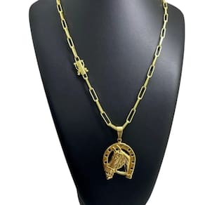 Cordão 6mm Tijolinho + Pingente Ferradura- Banhado a ouro Detalhes do Produto: Material: ligas metálicas de alta qualidade, especialmente tratadas para fixação e absorção do ouro, com acabamento em verniz protetor. Aparência: visual idêntico ao ouro maciço. Produção: artesanal, com atenção meticulosa aos detalhes. Banho: 10 camadas espessas de ouro 18k, finalizadas com verniz antialérgico . Elos: soldados varia conforme o modelo . Pedras: zircônias brilhantes cravejadas quando aplicável . Tamanhos Disponíveis: Cordões Masculinos: 70cm padrão e 60cm sob consulta/Pedido Via Chat . Cordões Femininos: 50cm padrão e 45cm sob consulta/Pedido Via Chat . Pulseiras: 21cm padrão ; tamanhos de 18cm a 23cm sob consulta/Pedido Via Chat. Pingentes: conforme imagens; consulte para mais detalhes via chat. Espessuras Recomendadas para Cordões / Pingentes: P: 1mm a 4mm M: 4mm a 8mm G: 6mm a 13mm Gg: 12mm a 18mm Incluso na Compra: Saquinho de organza para armazenamento seguro. Caixa elegante, perfeita para presente. Cupom de desconto para a próxima compra. Flyer com outros produtos da coleção. Carta de agradecimento personalizada. Adesivo da marca ToJoia18k. Informações Adicionais: : 6 meses termos acompanham o produto . Devolução: 7 dias para devolução sem questionamentos. Envio: despacho em até 24 horas úteis após confirmação do pagamento. Cuidados com a Peça: Evite contato com produtos químicos; aguarde o perfume secar antes de usar. Evite contato com shampoo, condicionadores e suor excessivo. Armazene em local seco, preferencialmente no saquinho de organza fornecido. Uso no mar e piscina é permitido; lave com água corrente e sabão neutro após. Por que Escolher a ToJoia18k Semi-joias luxuosas que combinam estilo, qualidade e sofisticação. Banho espesso de ouro 18k, garantindo brilho duradouro e acabamento impecável. Design exclusivo e produção artesanal, perfeitos para qualquer ocasião. Materiais premium que asseguram durabilidade. Ao escolher uma semi-joia ToJoia18k, você investe em qualidade, elegância e uma experiência única. Aguardamos sua compra Observação: pode ocorrer variação no fecho raramente . Imagens reais, sem edição. Qualquer dúvida, estamos à disposição para esclarecimentos. Marca: Não Informado