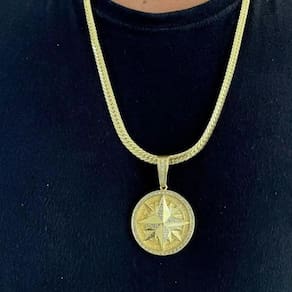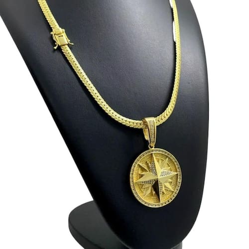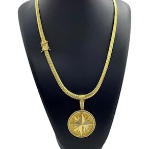 Cordão 7mm Laminado + Pingente Rosa Ventos - Banhado a ouro Detalhes do Produto: Material: ligas metálicas de alta qualidade, especialmente tratadas para fixação e absorção do ouro, com acabamento em verniz protetor. Aparência: visual idêntico ao ouro maciço. Produção: artesanal, com atenção meticulosa aos detalhes. Banho: 10 camadas espessas de ouro 18k, finalizadas com verniz antialérgico . Elos: soldados varia conforme o modelo . Pedras: zircônias brilhantes cravejadas quando aplicável . Tamanhos Disponíveis: Cordões Masculinos: 70cm padrão e 60cm sob consulta/Pedido Via Chat . Cordões Femininos: 50cm padrão e 45cm sob consulta/Pedido Via Chat . Pulseiras: 21cm padrão ; tamanhos de 18cm a 23cm sob consulta/Pedido Via Chat. Pingentes: conforme imagens; consulte para mais detalhes via chat. Espessuras Recomendadas para Cordões / Pingentes: P: 1mm a 4mm M: 4mm a 8mm G: 6mm a 13mm Gg: 12mm a 18mm Incluso na Compra: Saquinho de organza para armazenamento seguro. Caixa elegante, perfeita para presente. Cupom de desconto para a próxima compra. Flyer com outros produtos da coleção. Carta de agradecimento personalizada. Adesivo da marca ToJoia18k. Informações Adicionais: : 6 meses termos acompanham o produto . Devolução: 7 dias para devolução sem questionamentos. Envio: despacho em até 24 horas úteis após confirmação do pagamento. Cuidados com a Peça: Evite contato com produtos químicos; aguarde o perfume secar antes de usar. Evite contato com shampoo, condicionadores e suor excessivo. Armazene em local seco, preferencialmente no saquinho de organza fornecido. Uso no mar e piscina é permitido; lave com água corrente e sabão neutro após. Por que Escolher a ToJoia18k Semi-joias luxuosas que combinam estilo, qualidade e sofisticação. Banho espesso de ouro 18k, garantindo brilho duradouro e acabamento impecável. Design exclusivo e produção artesanal, perfeitos para qualquer ocasião. Materiais premium que asseguram durabilidade. Ao escolher uma semi-joia ToJoia18k, você investe em qualidade, elegância e uma experiência única. Aguardamos sua compra Observação: pode ocorrer variação no fecho raramente . Imagens reais, sem edição. Qualquer dúvida, estamos à disposição para esclarecimentos. Marca: Não Informado