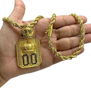 Cordão 8mm baiano + Pingente 00 - Banhado a ouro 18k Detalhes do Produto: Material: ligas metálicas de alta qualidade, especialmente tratadas para fixação e absorção do ouro, com acabamento em verniz protetor. Aparência: visual idêntico ao ouro maciço. Produção: artesanal, com atenção meticulosa aos detalhes. Banho: 10 camadas espessas de ouro 18k, finalizadas com verniz antialérgico . Elos: soldados varia conforme o modelo . Pedras: zircônias brilhantes cravejadas quando aplicável . Tamanhos Disponíveis: Cordões Masculinos: 70cm padrão e 60cm sob consulta/Pedido Via Chat . Cordões Femininos: 50cm padrão e 45cm sob consulta/Pedido Via Chat . Pulseiras: 21cm padrão ; tamanhos de 18cm a 23cm sob consulta/Pedido Via Chat. Pingentes: conforme imagens; consulte para mais detalhes via chat. Espessuras Recomendadas para Cordões / Pingentes: P: 1mm a 4mm M: 4mm a 8mm G: 6mm a 13mm Gg: 12mm a 18mm Incluso na Compra: Saquinho de organza para armazenamento seguro. Caixa elegante, perfeita para presente. Cupom de desconto para a próxima compra. Flyer com outros produtos da coleção. Carta de agradecimento personalizada. Adesivo da marca ToJoia18k. Informações Adicionais: : 6 meses termos acompanham o produto . Devolução: 7 dias para devolução sem questionamentos. Envio: despacho em até 24 horas úteis após confirmação do pagamento. Cuidados com a Peça: Evite contato com produtos químicos; aguarde o perfume secar antes de usar. Evite contato com shampoo, condicionadores e suor excessivo. Armazene em local seco, preferencialmente no saquinho de organza fornecido. Uso no mar e piscina é permitido; lave com água corrente e sabão neutro após. Por que Escolher a ToJoia18k Semi-joias luxuosas que combinam estilo, qualidade e sofisticação. Banho espesso de ouro 18k, garantindo brilho duradouro e acabamento impecável. Design exclusivo e produção artesanal, perfeitos para qualquer ocasião. Materiais premium que asseguram durabilidade. Ao escolher uma semi-joia ToJoia18k, você investe em qualidade, elegância e uma experiência única. Aguardamos sua compra Observação: pode ocorrer variação no fecho raramente . Imagens reais, sem edição. Qualquer dúvida, estamos à disposição para esclarecimentos. Marca: Tojoia18K