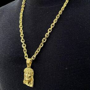 Cordão 8Mm Cadeado + Pingente Jesus Face - Banhado A Ouro