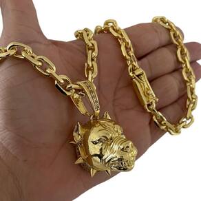 Cordão 8mm Cadeado + Pingente Pitbull - Banhado a ouro Detalhes do Produto: Material: ligas metálicas de alta qualidade, especialmente tratadas para fixação e absorção do ouro, com acabamento em verniz protetor. Aparência: visual idêntico ao ouro maciço. Produção: artesanal, com atenção meticulosa aos detalhes. Banho: 10 camadas espessas de ouro 18k, finalizadas com verniz antialérgico . Elos: soldados varia conforme o modelo . Pedras: zircônias brilhantes cravejadas quando aplicável . Tamanhos Disponíveis: Cordões Masculinos: 70cm padrão e 60cm sob consulta/Pedido Via Chat . Cordões Femininos: 50cm padrão e 45cm sob consulta/Pedido Via Chat . Pulseiras: 21cm padrão ; tamanhos de 18cm a 23cm sob consulta/Pedido Via Chat. Pingentes: conforme imagens; consulte para mais detalhes via chat. Espessuras Recomendadas para Cordões / Pingentes: P: 1mm a 4mm M: 4mm a 8mm G: 6mm a 13mm Gg: 12mm a 18mm Incluso na Compra: Saquinho de organza para armazenamento seguro. Caixa elegante, perfeita para presente. Cupom de desconto para a próxima compra. Flyer com outros produtos da coleção. Carta de agradecimento personalizada. Adesivo da marca ToJoia18k. Informações Adicionais: : 6 meses termos acompanham o produto . Devolução: 7 dias para devolução sem questionamentos. Envio: despacho em até 24 horas úteis após confirmação do pagamento. Cuidados com a Peça: Evite contato com produtos químicos; aguarde o perfume secar antes de usar. Evite contato com shampoo, condicionadores e suor excessivo. Armazene em local seco, preferencialmente no saquinho de organza fornecido. Uso no mar e piscina é permitido; lave com água corrente e sabão neutro após. Por que Escolher a ToJoia18k Semi-joias luxuosas que combinam estilo, qualidade e sofisticação. Banho espesso de ouro 18k, garantindo brilho duradouro e acabamento impecável. Design exclusivo e produção artesanal, perfeitos para qualquer ocasião. Materiais premium que asseguram durabilidade. Ao escolher uma semi-joia ToJoia18k, você investe em qualidade, elegância e uma experiência única. Aguardamos sua compra Observação: pode ocorrer variação no fecho raramente . Imagens reais, sem edição. Qualquer dúvida, estamos à disposição para esclarecimentos. Marca: Tojoia18K