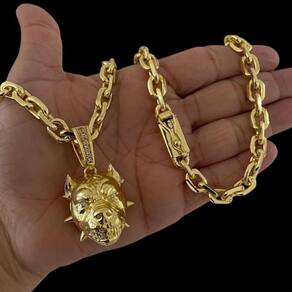 Cordão 8mm Cadeado + Pingente Pitbull - Banhado a ouro Detalhes do Produto: Material: ligas metálicas de alta qualidade, especialmente tratadas para fixação e absorção do ouro, com acabamento em verniz protetor. Aparência: visual idêntico ao ouro maciço. Produção: artesanal, com atenção meticulosa aos detalhes. Banho: 10 camadas espessas de ouro 18k, finalizadas com verniz antialérgico . Elos: soldados varia conforme o modelo . Pedras: zircônias brilhantes cravejadas quando aplicável . Tamanhos Disponíveis: Cordões Masculinos: 70cm padrão e 60cm sob consulta/Pedido Via Chat . Cordões Femininos: 50cm padrão e 45cm sob consulta/Pedido Via Chat . Pulseiras: 21cm padrão ; tamanhos de 18cm a 23cm sob consulta/Pedido Via Chat. Pingentes: conforme imagens; consulte para mais detalhes via chat. Espessuras Recomendadas para Cordões / Pingentes: P: 1mm a 4mm M: 4mm a 8mm G: 6mm a 13mm Gg: 12mm a 18mm Incluso na Compra: Saquinho de organza para armazenamento seguro. Caixa elegante, perfeita para presente. Cupom de desconto para a próxima compra. Flyer com outros produtos da coleção. Carta de agradecimento personalizada. Adesivo da marca ToJoia18k. Informações Adicionais: : 6 meses termos acompanham o produto . Devolução: 7 dias para devolução sem questionamentos. Envio: despacho em até 24 horas úteis após confirmação do pagamento. Cuidados com a Peça: Evite contato com produtos químicos; aguarde o perfume secar antes de usar. Evite contato com shampoo, condicionadores e suor excessivo. Armazene em local seco, preferencialmente no saquinho de organza fornecido. Uso no mar e piscina é permitido; lave com água corrente e sabão neutro após. Por que Escolher a ToJoia18k Semi-joias luxuosas que combinam estilo, qualidade e sofisticação. Banho espesso de ouro 18k, garantindo brilho duradouro e acabamento impecável. Design exclusivo e produção artesanal, perfeitos para qualquer ocasião. Materiais premium que asseguram durabilidade. Ao escolher uma semi-joia ToJoia18k, você investe em qualidade, elegância e uma experiência única. Aguardamos sua compra Observação: pode ocorrer variação no fecho raramente . Imagens reais, sem edição. Qualquer dúvida, estamos à disposição para esclarecimentos. Marca: Tojoia18K