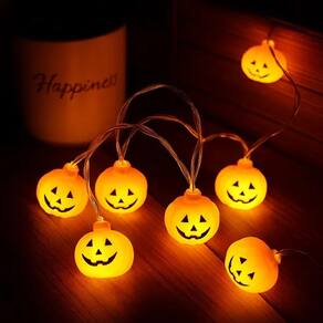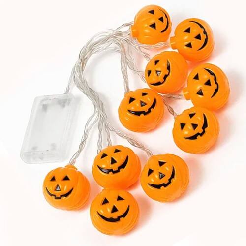 Com 2 metros e 60cm de extensão e 12 LEDs no formato clássico de cabeça de abóbora você tem flexibilidade total para decorar grandes áreas ou criar caminhos luminosos.