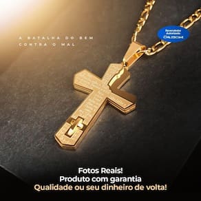 O Kit Corrente Cordão Dourado Banhado Aço Inox com Pingente Cruz Pai Nosso + Pulseira Dourada é mais do que uma joia; é uma manifestação de fé e estilo. Adquira agora este conjunto que combina elegância e espiritualidade de maneira única.