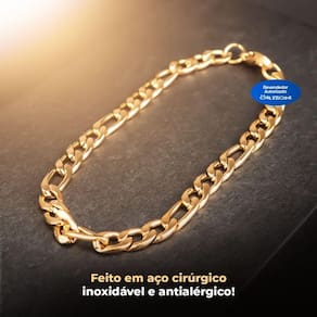Cordão aço banhado ouro + pulseira + pingente cruz pai nosso Kit Corrente Cordão Dourado Banhado Aço Inox com Pingente Cruz Pai Nosso + Pulseira Dourada