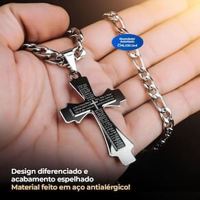 O Kit Corrente Cordão Prata Aço Inox com Pingente Cruz Pai Nosso + Pulseira em Aço Inox é mais do que uma joia; é uma manifestação de fé e estilo. Adquira agora este conjunto que une elegância e espiritualidade de maneira única. E lembre-se: o aço inox é altamente resistente e durável, garantindo um custo benefício sem igual. Compre já