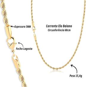 Especificações Tamanho De comprimento: 60cm Peso: 15,4 gramas Fecho: Lagosta Espessura Do elo: 3mm Tipo do Elo: Baiano Banho de Camadas: 10 banho de camadas Verniz: Potencializado