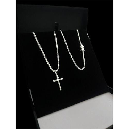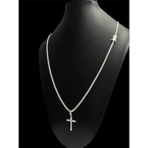 Cordão Cadeado Duplo 3Mm + Pingente Cruz Banhado Prata 925