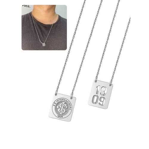 Cordão Colar Escapulário 60Cm Prata Unissex Time Pingente