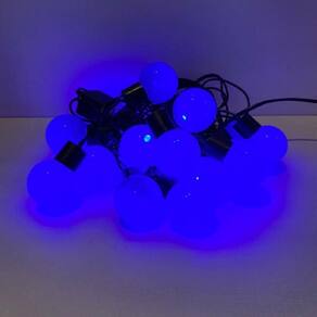 Características: - 20 Lâmpadas de Led - Lâmpadas de 5cm cada - Cor das bolas: Azul - Cor da Luz: Azul - Comprimento 5 metros (cordão com lâmpadas). - 22cm de espaçamento entre lâmpadas - Fio Preto - Voltagem: 110V - Ambiente: Interno - NÃO É PISCA PISCA - Peso: 175G aproximadamente . Pacote Incluindo: - 1x Cordão De Lâmpadas De Led Formato Bolinha Azul