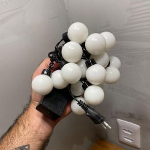 O comprimento total do cordão, incluindo as lâmpadas, é de 4 metros, sendo mais 60cm de fio até a tomada. Assim, você tem bastante flexibilidade na hora de posicionar o cordão onde quiser. E com um peso de apenas 470g, é fácil transportar e instalar.