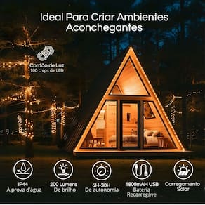1 Cordão de Luz LED Solar de 10 metros1 Cabo USB-C para recarga1 Manual do Usuário