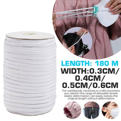 Material: poliéster, borracha Tamanho: 0,3 cm/0,4 cm/0,5 cm/0,6 cm Comprimento: 180 m Cor: branco Característica: elástico, ecológico, de alta tenacidade Usos para: bolsas, roupas, têxteis domésticos, sapatos Veja menos