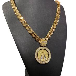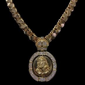 Cordão Friso S 13mm + N-S + Jesus Giratório - Banhado a ouro