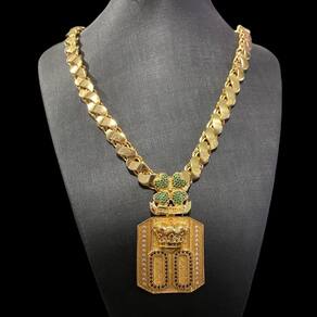 Cordão Friso S 13mm + Pingente 00 Trevo - Banhado a ouro