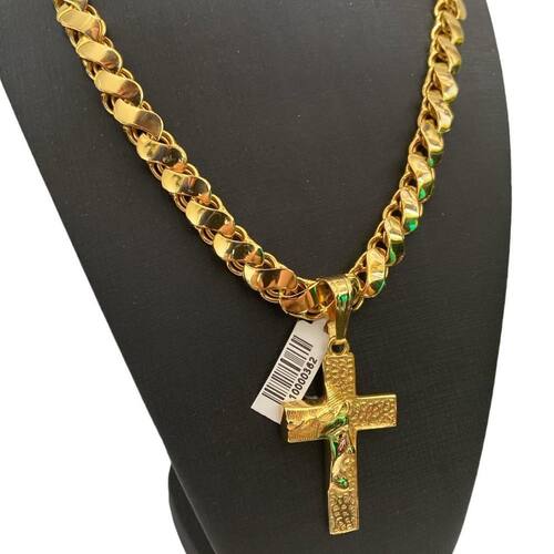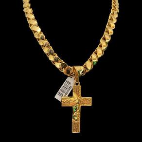 Cordão Friso S 13mm + Pingente Cruz Rosto - Banhado a ouro
