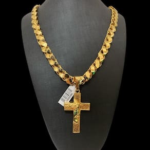 Cordão Friso S 13mm + Pingente Cruz Rosto - Banhado a ouro