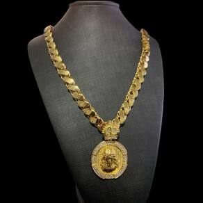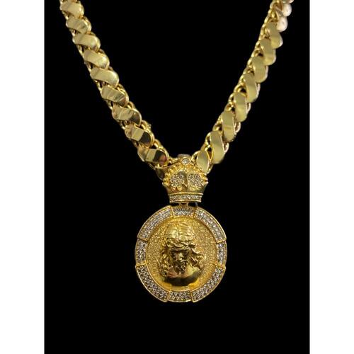Cordão Friso S 13mm + Pingente Jesus - Banhado a ouro 18k
