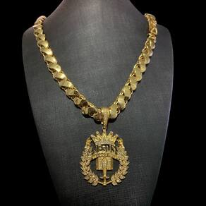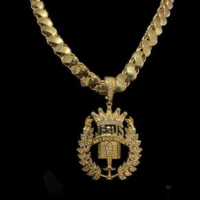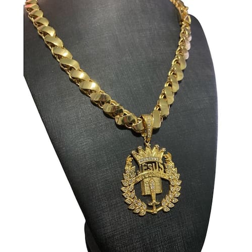 Cordão Friso S 13mm + Pingente Jesus - Banhado a ouro 18k