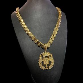 Cordão Friso S 13mm + Pingente Jesus - Banhado a ouro 18k
