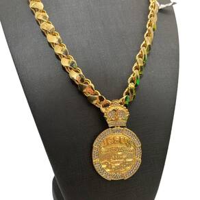 Cordão Friso S 13mm + Pingente Jesus Ceia - Banhado a ouro