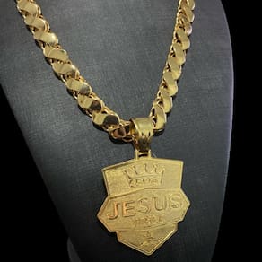 Cordão Friso S 13mm + Pingente Jesus Coroa - Banhado a ouro
