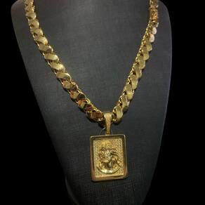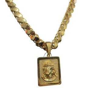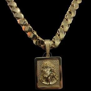 Cordão Friso S 13Mm + Pingente Jesus Rosto - Banhado A Ouro