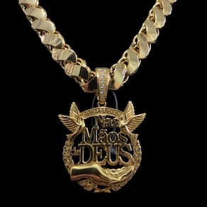 Cordão Friso S 13mm + Pingente Nas Mãos Deus Banhado a ouro