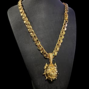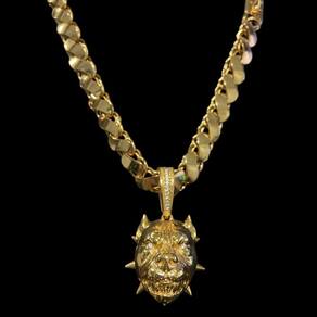 Cordão Friso S 13Mm + Pingente Pitbull - Banhado A Ouro