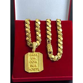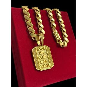 Cordão Friso s 13mm + Pingente Sorte - Banhado a Ouro Detalhes do Produto: Material: ligas metálicas de alta qualidade, especialmente tratadas para fixação e absorção do ouro, com acabamento em verniz protetor. Aparência: visual idêntico ao ouro maciço. Produção: artesanal, com atenção meticulosa aos detalhes. Banho: 10 camadas espessas de ouro 18k, finalizadas com verniz antialérgico . Elos: soldados varia conforme o modelo . Pedras: zircônias brilhantes cravejadas quando aplicável . Tamanhos Disponíveis: Cordões Masculinos: 70cm padrão e 60cm sob consulta/Pedido Via Chat . Cordões Femininos: 50cm padrão e 45cm sob consulta/Pedido Via Chat . Pulseiras: 21cm padrão ; tamanhos de 18cm a 23cm sob consulta/Pedido Via Chat. Pingentes: conforme imagens; consulte para mais detalhes via chat. Espessuras Recomendadas para Cordões / Pingentes: P: 1mm a 4mm M: 4mm a 8mm G: 6mm a 13mm Gg: 12mm a 18mm Incluso na Compra: Saquinho de organza para armazenamento seguro. Caixa elegante, perfeita para presente. Cupom de desconto para a próxima compra. Flyer com outros produtos da coleção. Carta de agradecimento personalizada. Adesivo da marca ToJoia18k. Informações Adicionais: : 6 meses termos acompanham o produto . Devolução: 7 dias para devolução sem questionamentos. Envio: despacho em até 24 horas úteis após confirmação do pagamento. Cuidados com a Peça: Evite contato com produtos químicos; aguarde o perfume secar antes de usar. Evite contato com shampoo, condicionadores e suor excessivo. Armazene em local seco, preferencialmente no saquinho de organza fornecido. Uso no mar e piscina é permitido; lave com água corrente e sabão neutro após. Por que Escolher a ToJoia18k Semi-joias luxuosas que combinam estilo, qualidade e sofisticação. Banho espesso de ouro 18k, garantindo brilho duradouro e acabamento impecável. Design exclusivo e produção artesanal, perfeitos para qualquer ocasião. Materiais premium que asseguram durabilidade. Ao escolher uma semi-joia ToJoia18k, você investe em qualidade, elegância e uma experiência única. Aguardamos sua compra Observação: pode ocorrer variação no fecho raramente . Imagens reais, sem edição. Qualquer dúvida, estamos à disposição para esclarecimentos. Marca: Não Informado Ean: 7898416839306