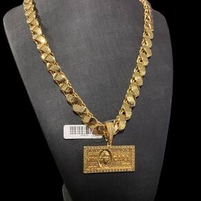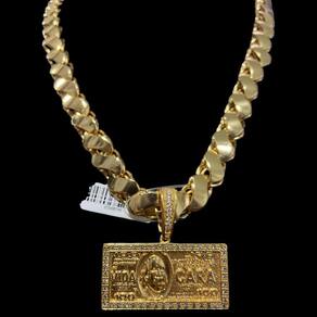 Cordão Friso S 13Mm + Pingente Vida Cara - Banhado A Ouro