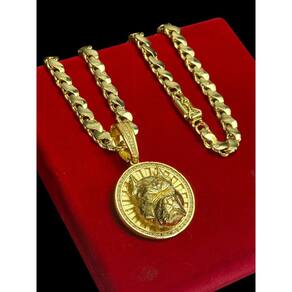 Cordão Friso s 8mm + Pingente Pitbull Redondo Banhado a Ouro Detalhes do Produto: Material: ligas metálicas de alta qualidade, especialmente tratadas para fixação e absorção do ouro, com acabamento em verniz protetor. Aparência: visual idêntico ao ouro maciço. Produção: artesanal, com atenção meticulosa aos detalhes. Banho: 10 camadas espessas de ouro 18k, finalizadas com verniz antialérgico . Elos: soldados varia conforme o modelo . Pedras: zircônias brilhantes cravejadas quando aplicável . Tamanhos Disponíveis: Cordões Masculinos: 70cm padrão e 60cm sob consulta/Pedido Via Chat . Cordões Femininos: 50cm padrão e 45cm sob consulta/Pedido Via Chat . Pulseiras: 21cm padrão ; tamanhos de 18cm a 23cm sob consulta/Pedido Via Chat. Pingentes: conforme imagens; consulte para mais detalhes via chat. Espessuras Recomendadas para Cordões / Pingentes: P: 1mm a 4mm M: 4mm a 8mm G: 6mm a 13mm Gg: 12mm a 18mm Incluso na Compra: Saquinho de organza para armazenamento seguro. Caixa elegante, perfeita para presente. Cupom de desconto para a próxima compra. Flyer com outros produtos da coleção. Carta de agradecimento personalizada. Adesivo da marca ToJoia18k. Informações Adicionais: : 6 meses termos acompanham o produto . Devolução: 7 dias para devolução sem questionamentos. Envio: despacho em até 24 horas úteis após confirmação do pagamento. Cuidados com a Peça: Evite contato com produtos químicos; aguarde o perfume secar antes de usar. Evite contato com shampoo, condicionadores e suor excessivo. Armazene em local seco, preferencialmente no saquinho de organza fornecido. Uso no mar e piscina é permitido; lave com água corrente e sabão neutro após. Por que Escolher a ToJoia18k Semi-joias luxuosas que combinam estilo, qualidade e sofisticação. Banho espesso de ouro 18k, garantindo brilho duradouro e acabamento impecável. Design exclusivo e produção artesanal, perfeitos para qualquer ocasião. Materiais premium que asseguram durabilidade. Ao escolher uma semi-joia ToJoia18k, você investe em qualidade, elegância e uma experiência única. Aguardamos sua compra Observação: pode ocorrer variação no fecho raramente . Imagens reais, sem edição. Qualquer dúvida, estamos à disposição para esclarecimentos.