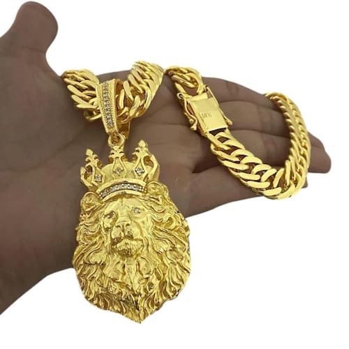 Cordão Grumet 13mm + Pingente King Leão g - Banhado a Ouro Informações do Seu Pedido O que acompanha sua compra: